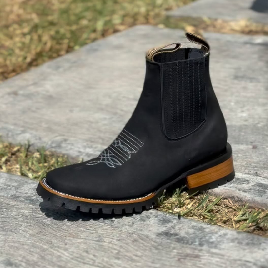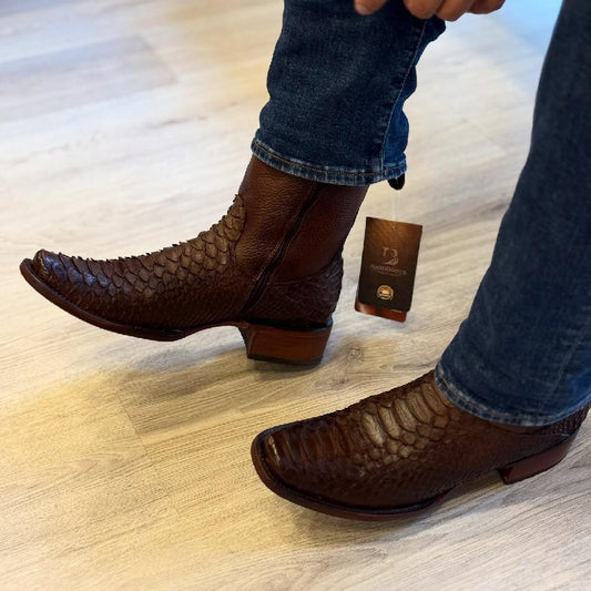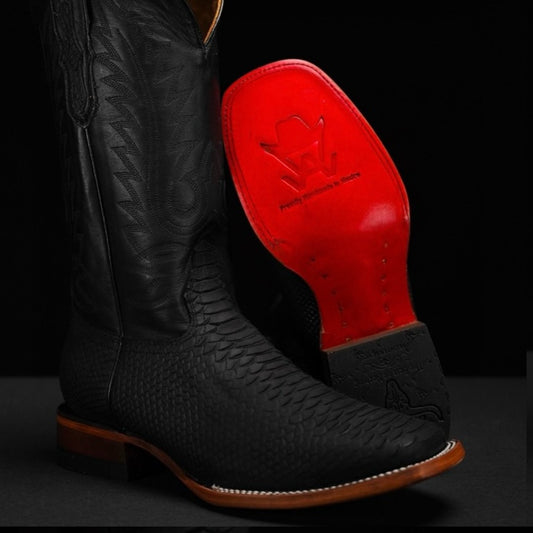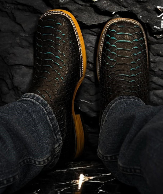 ⏰ Last Day Promotion-Matte Black Python Leather Boots - Square Toe
