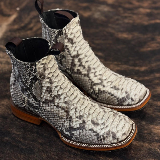 Men Print Jumbo Python Matte Honey Square Toe Boots