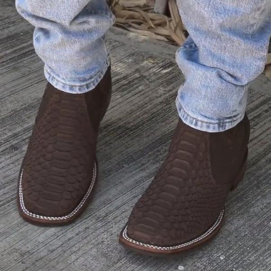Western Python Half Boots-Brown