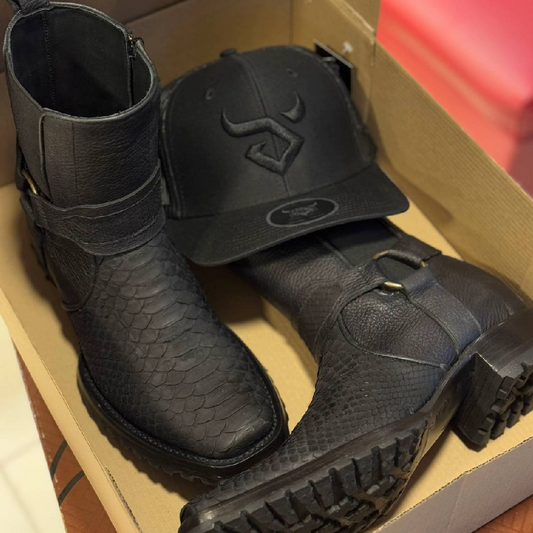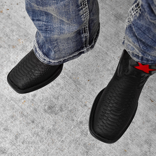 Star Matte Black Python Boots