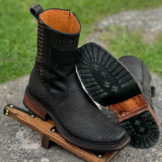 3D Lightweight Black Nobuck Leather Square Toe Boots