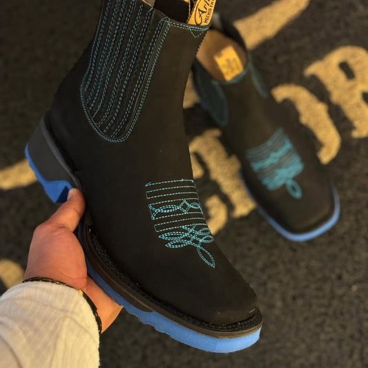 3D Lightweight Black Nobuck Leather Square Toe Boots